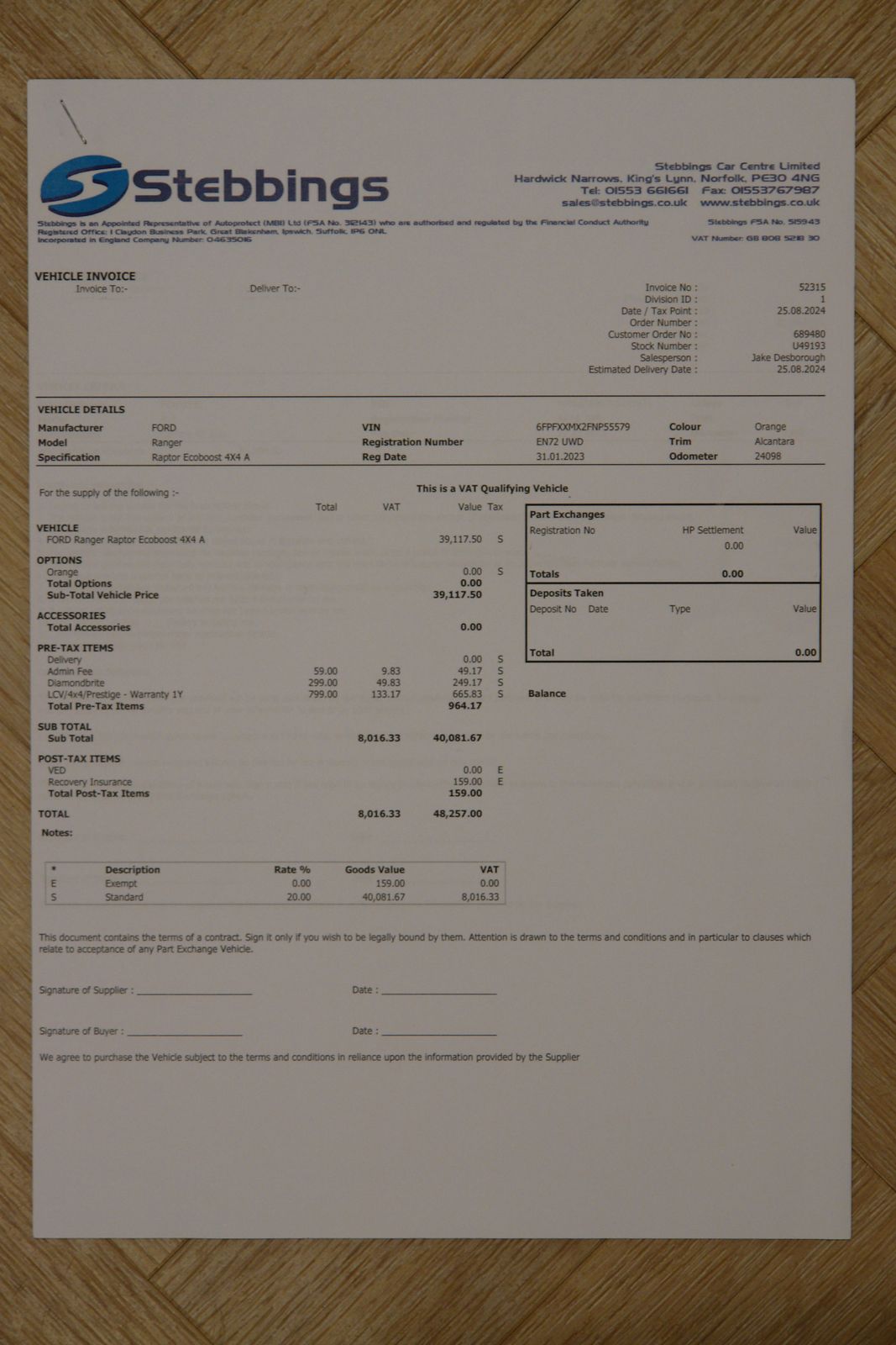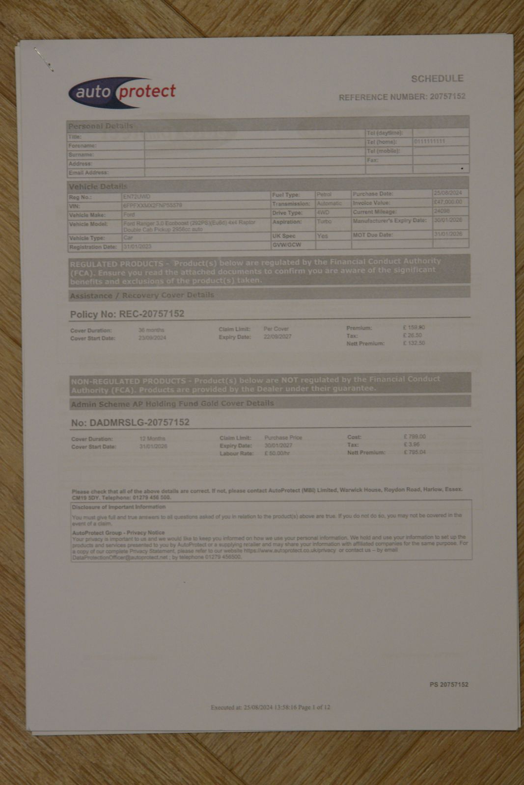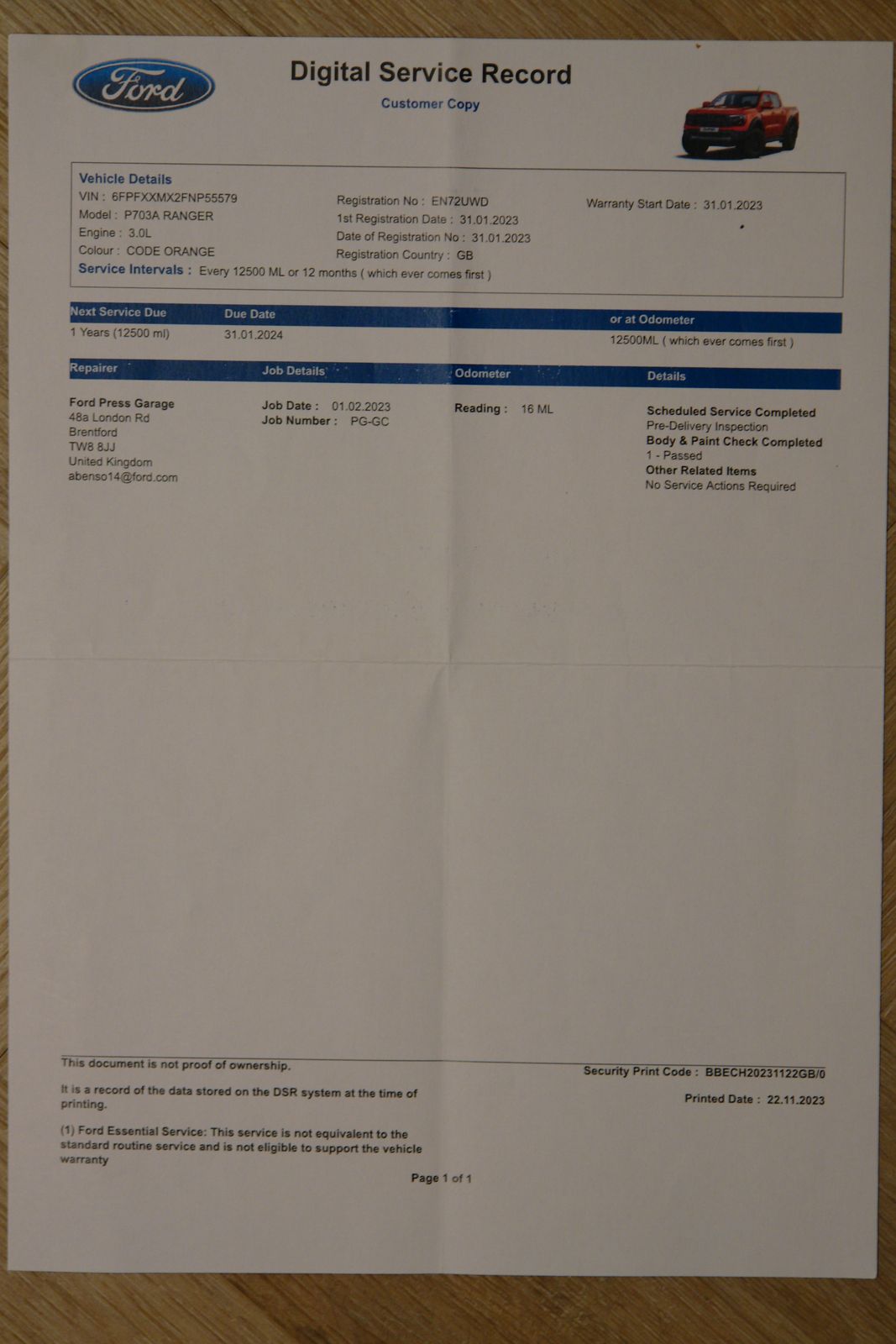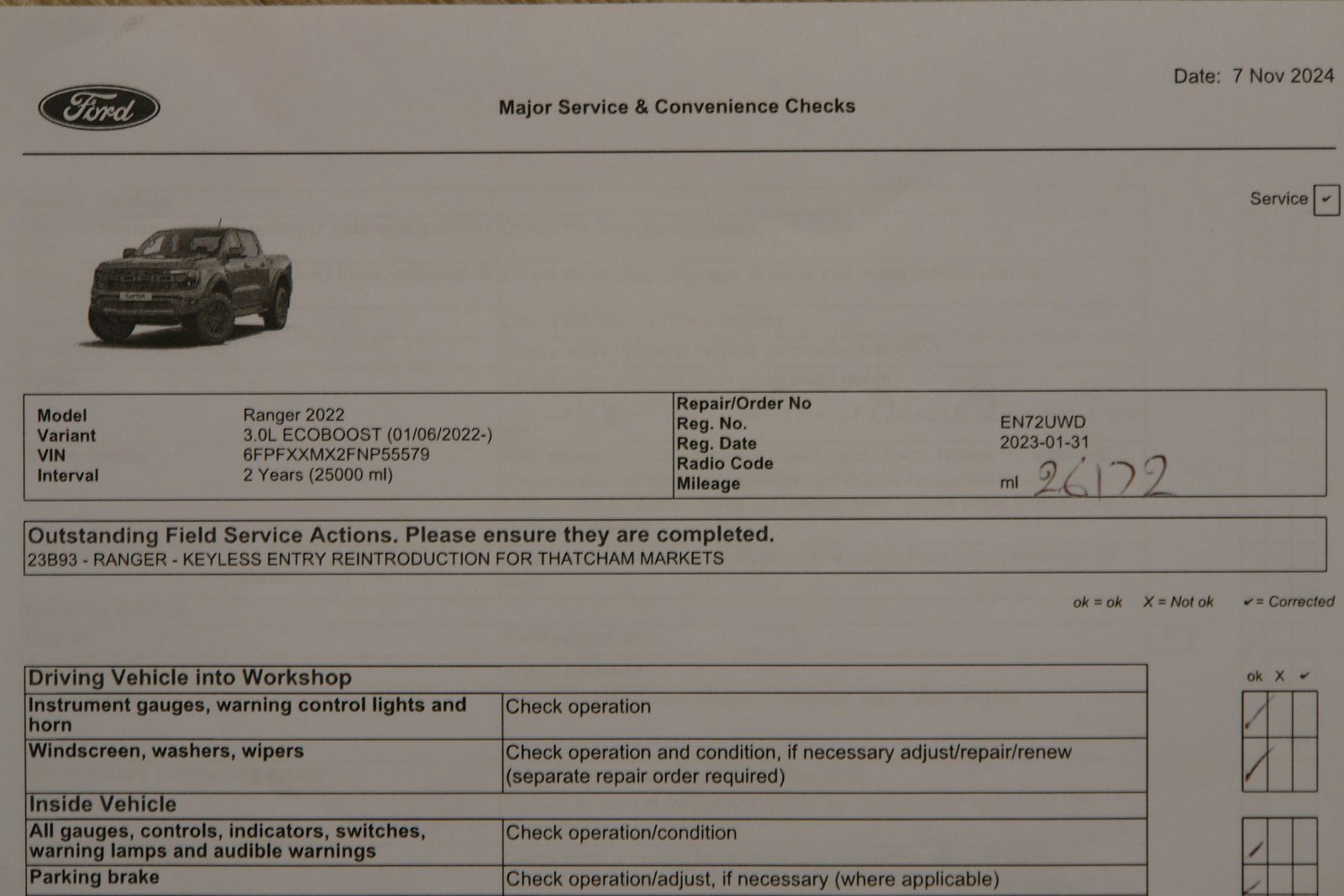 ## JUST ARRIVED!! ## A stunning looking Raptor in rare Code Orange, with towbar and electric roller shutter, it comes with full Ford service history and extended warranty to 2027. PLEASE WATCH THE VIDEO and VIEW ALL THE PHOTOS (of the car and documentation). It's been privately owned (so no VAT to pay) and comes equipped with 240V mains sockets (2), tailored plastic loadliner and carpets, heavy duty tailored rubber mats for the cab, 6 overhead auxilliary switches (could be used for lightbars or a winch?) as well the usual B&O sound system, 360 cameras, heated seats & steering wheel, lane change assist, adaptive cruise control, LED headlights, DAB, Bluetooth, various steering, suspension & exhaust modes (see photos). Powered by a 3.0 litre turbocharged petrol engine spec'd at almost 300bhp coupled to a 10 speed automatic gearbox and selectable mode 4 Wheel Drive System. This ensures smooth & safe power delivery in all weather conditions with 0-60mph in just 7.9 seconds. There is a full Ford service history (last serviced at 26,172 miles). It was purchased as a 1 owner vehicle in August 2024 with an extra £1257 spent on 3 years breakdown cover, a 12 months extended warranty (which takes over from the Ford manufacturer's warranty in February 2026) and a Diamondbrite Ceramic Coating. We're selling it as a private sale on behalf of the owner so, as the buyer, you can benefit from the the transfer of these. PLEASE WATCH THE VIDEO and VIEW ALL THE PHOTOS (of the car and documentation). We welcome part exchanges, we're licensed credit brokers and we can help with cherished transfers. We are also close to the airport and railway stations. THIS CAR CAN BE RESERVED with NO COMMITMENT TO BUY with a small payment (we'll take it off sale for you to view at your convenience). PLEASE CALL 07800 911 911 TO ARRANGE TO VIEW OR TO RESERVE THIS CAR www.autoperform.com